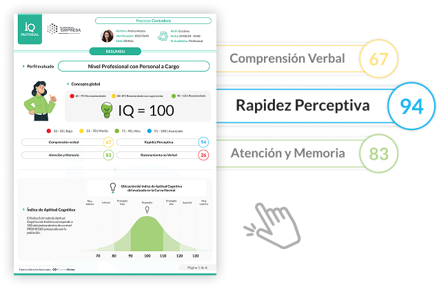 Con nuestra prueba de coeficiente intelectual podrás tener información precisa sobre las habilidades mentales de tus candidatos en distintos aspectos.